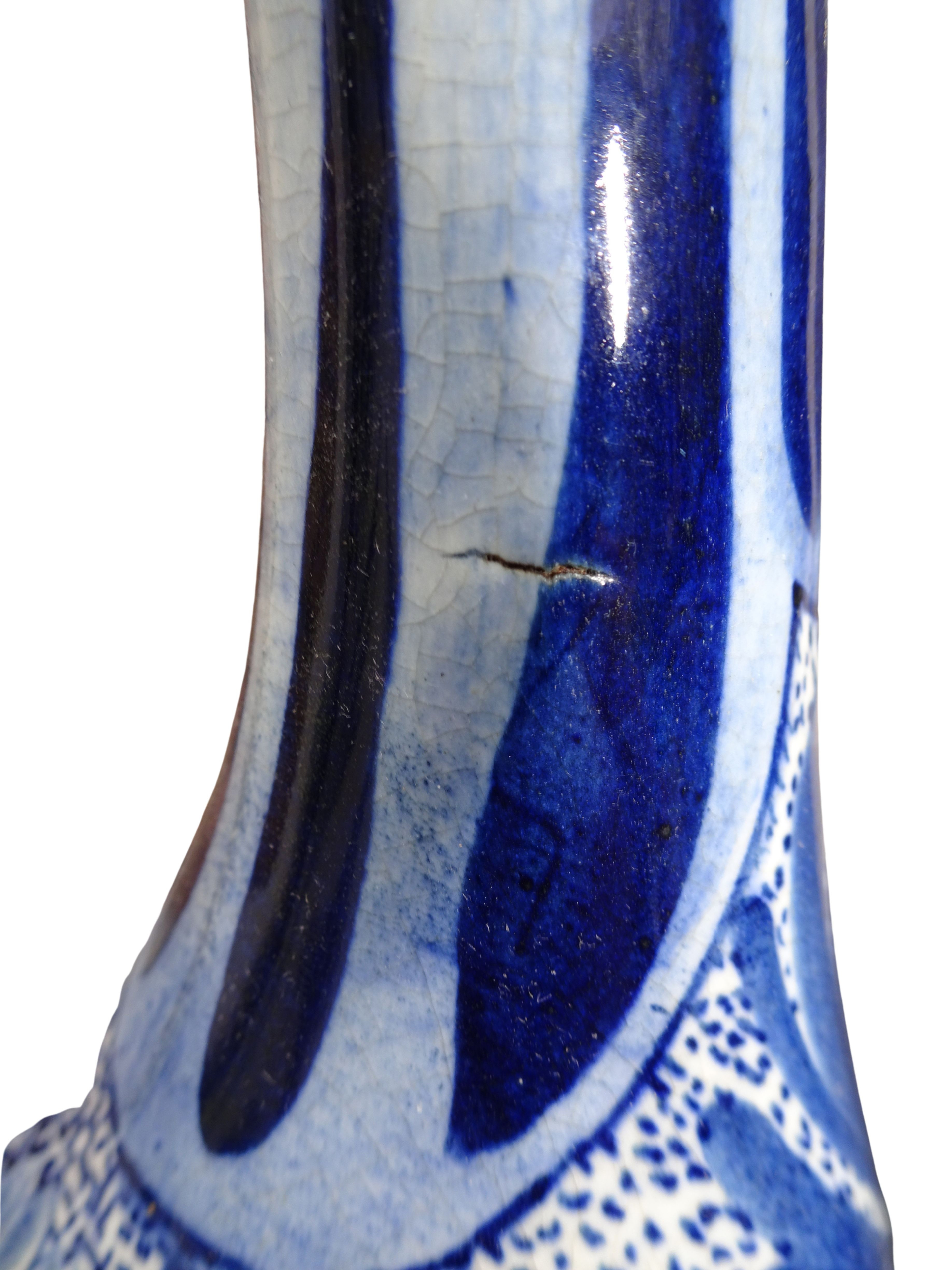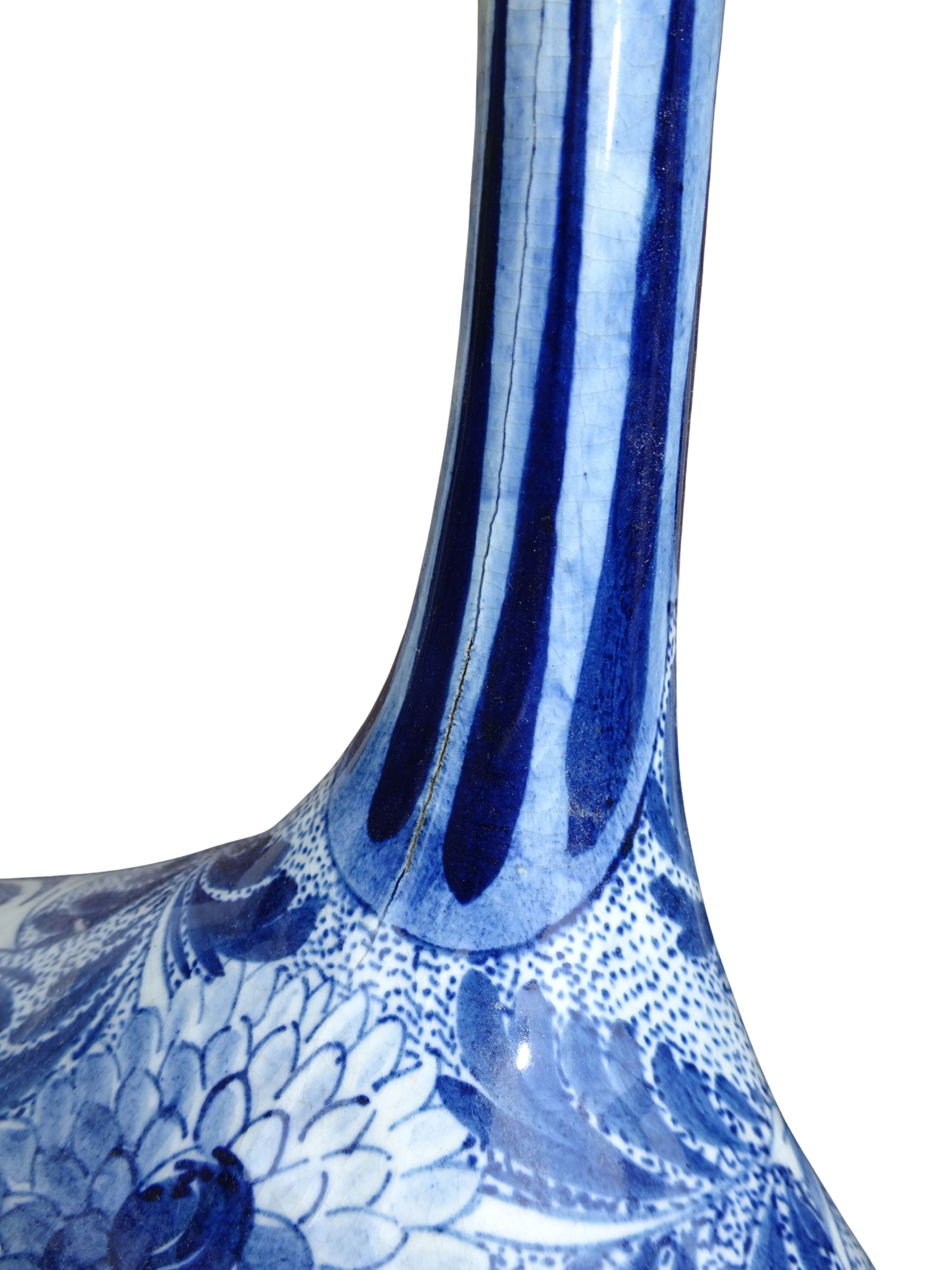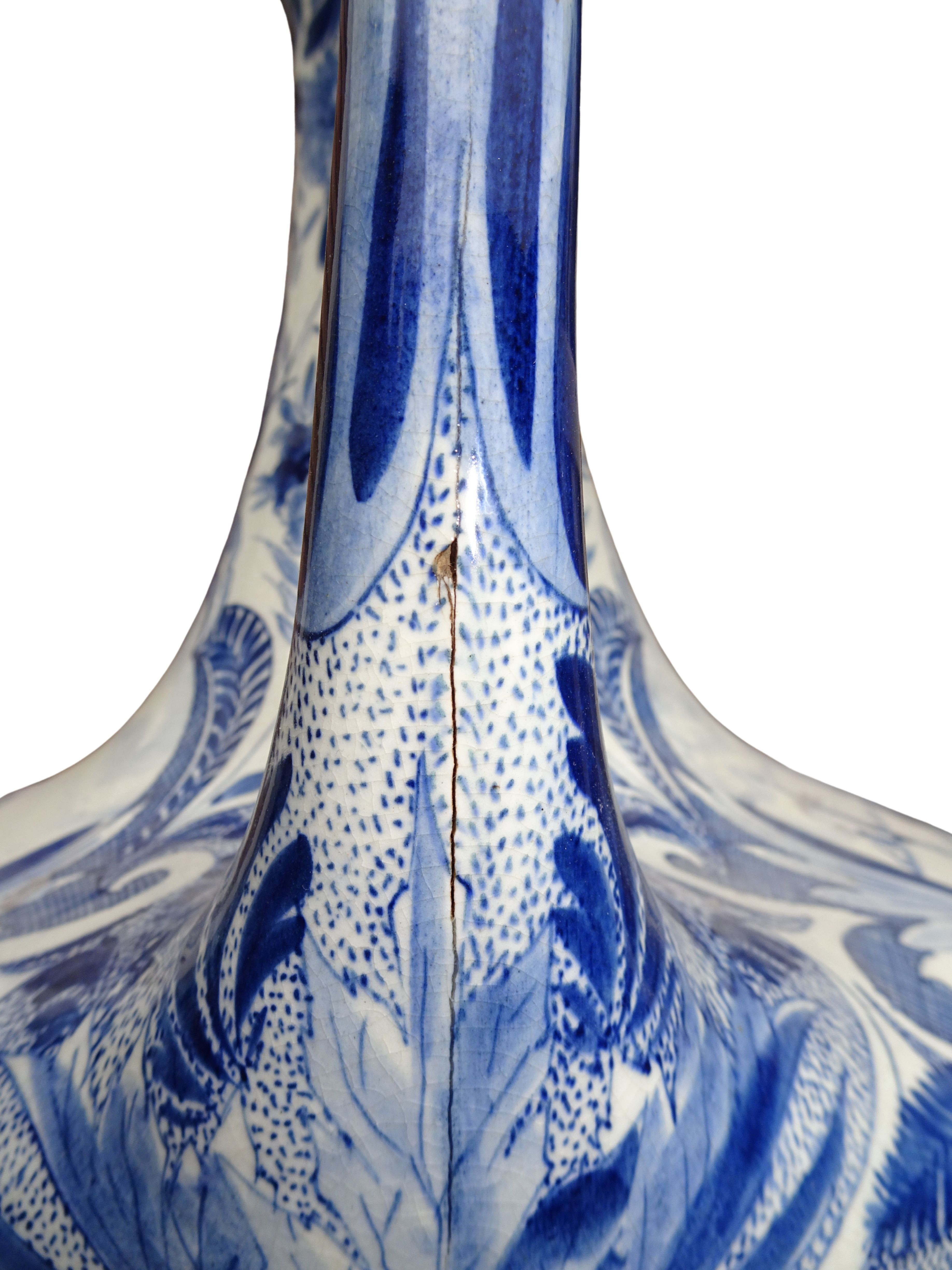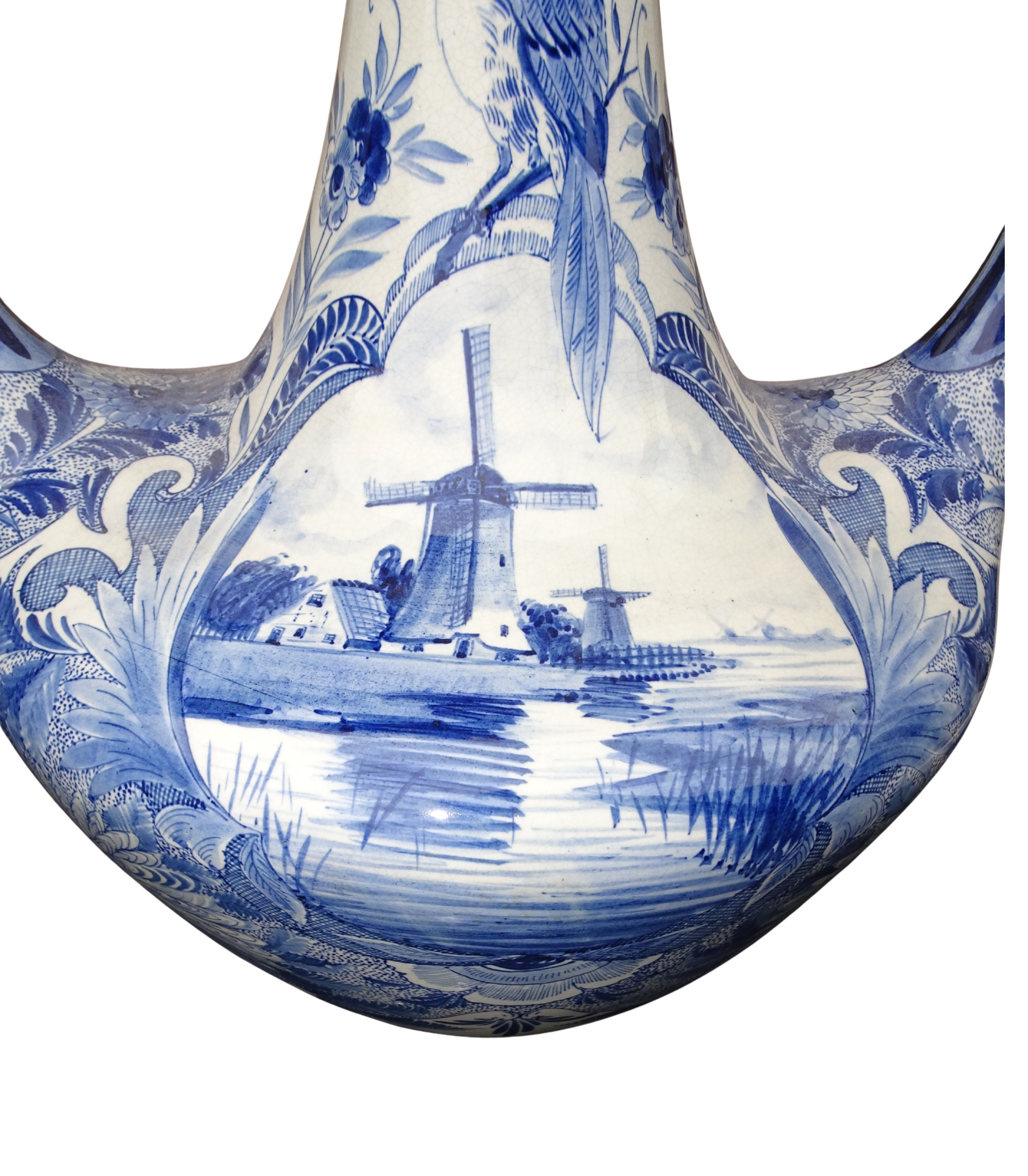 Grote 50 cm hoge handgeschilderde vaas van Plateelbakkerij Zuid-Holland te Gouda, blauw-wit decor Delftsch model amfora.