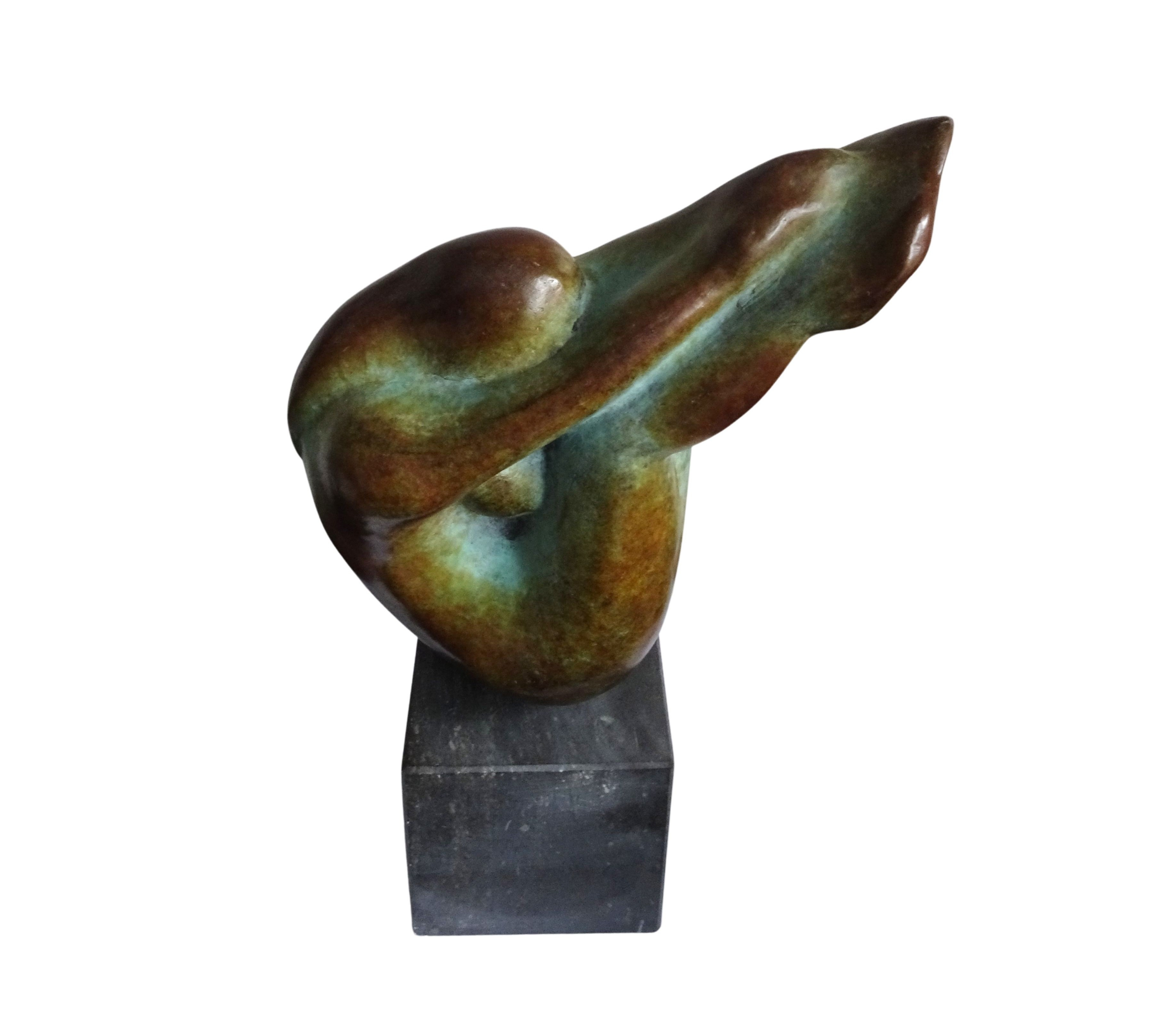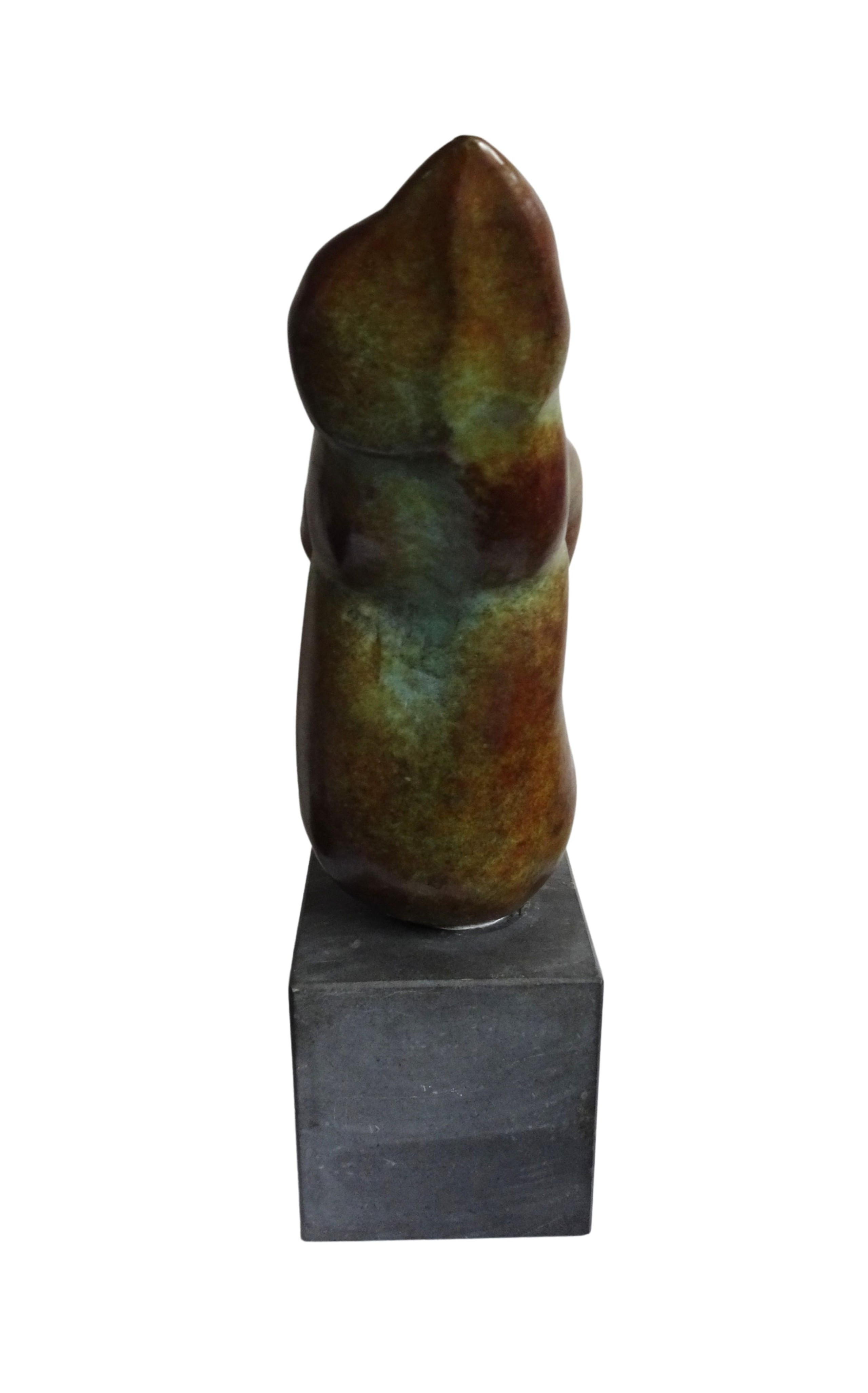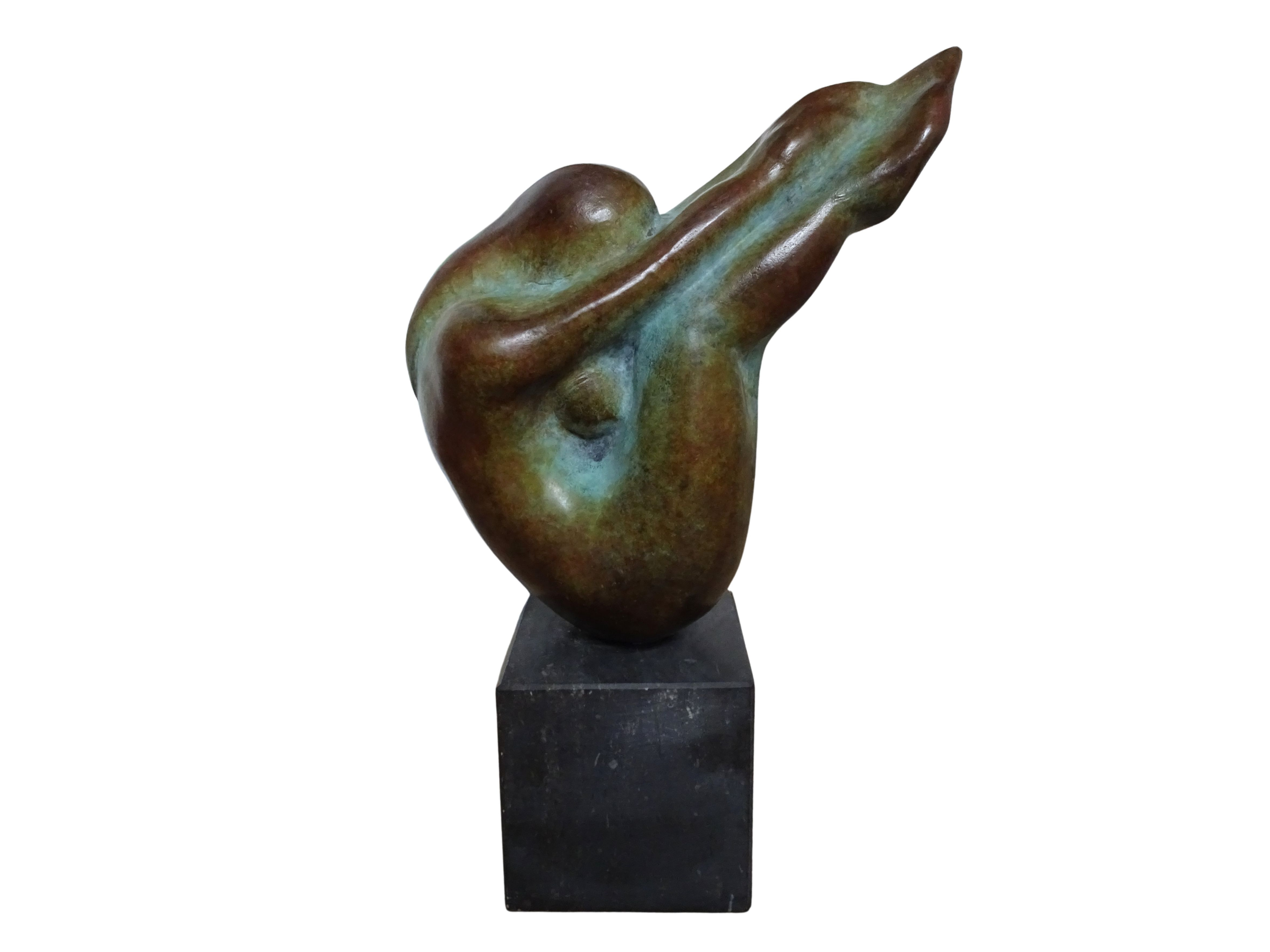 Bronzen sculptuur van een vrouwelijke torso op sokkel van natuursteen, Emile Cornelis (Maastricht, 1946)